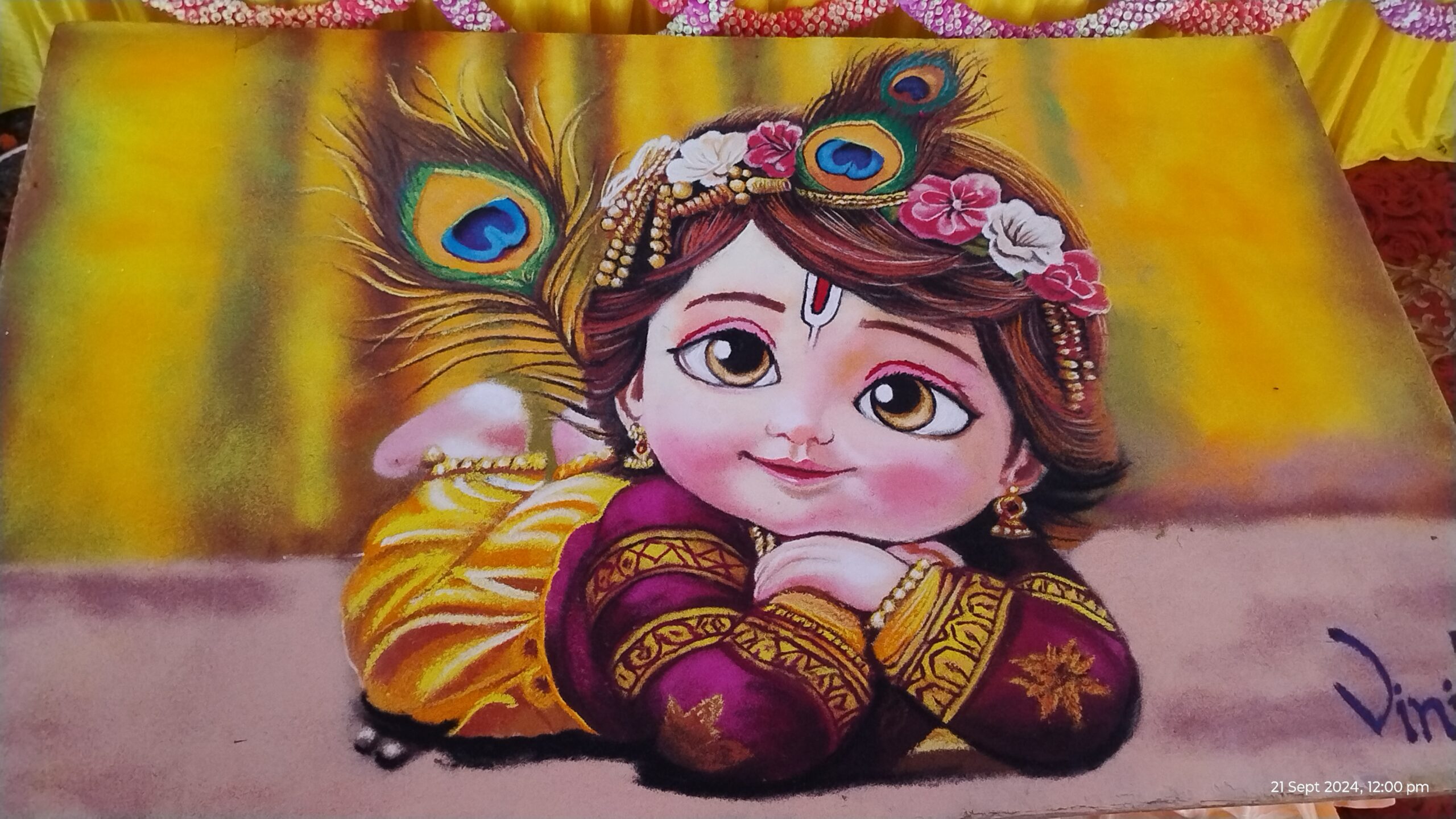सिंगोली नगर का गौरव होकर रांगोली के क्षेत्र में अपने झण्डे देशभर में गाड़ने वाली बहु विनिता ने लगभग 12 घण्टे की अथक मेहनत कर भगवान श्री कृष्ण का बाल चित्र रांगोली के माध्यम से बनाया जो पुरे दिन आकर्षण का केन्द्र रहा। बहु विनिता शर्मा की कला से प्रभावित होकर भागवताचार्य श्री कोश्लेन्दृ जी महाराज ने विनिता ओर मोनू का स्वागत कर उपारणा ओढ़ाया ।